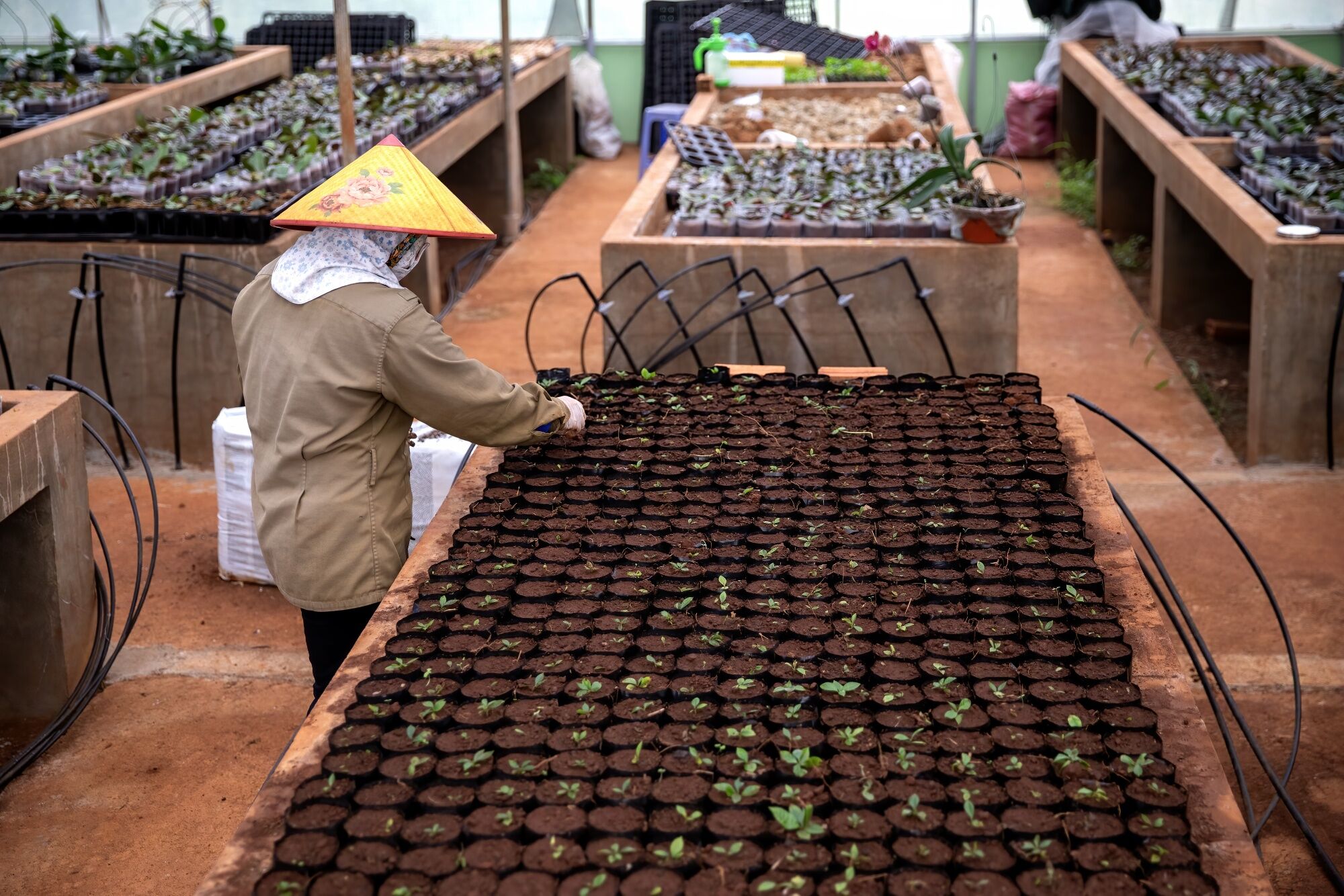 Cây giống cà phê trong nhà kính tại Trung tâm Nghiên cứu Nông lâm Tây Nguyên (WASI).