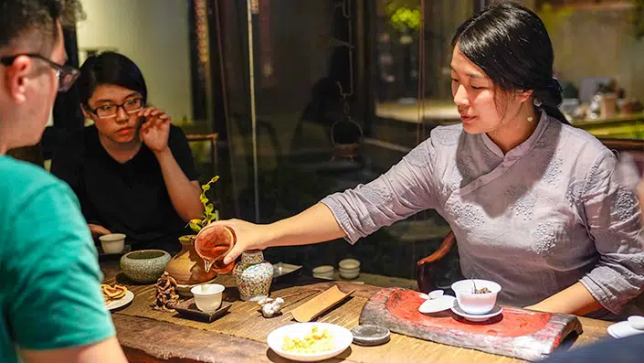 Ông nói: “Trong thập kỷ qua, tính thẩm mỹ của nghi lễ trà đạo ngày càng trở nên quan trọng, ngay cả bàn ghế và cách sắp xếp chỗ ngồi. “Tụ tập trà theo nghi thức cũng trở nên phổ biến hơn ở Trung Quốc.”