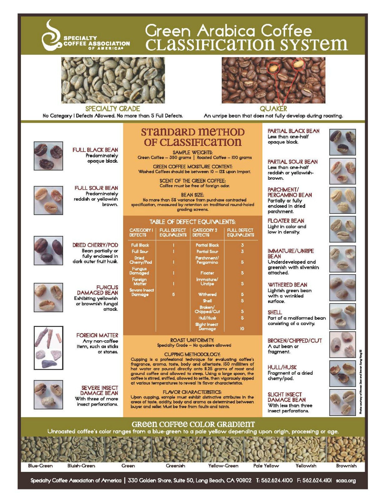 Specialty Coffee Association of America Arabica Green coffee Defect Handbook; Original Publications Date: April 2, 2014