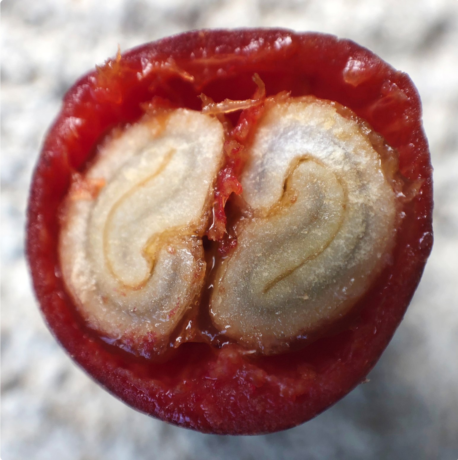 (Mặt cắt ngang của quả cà phê- nguồn ảnh Petra Vesela)
