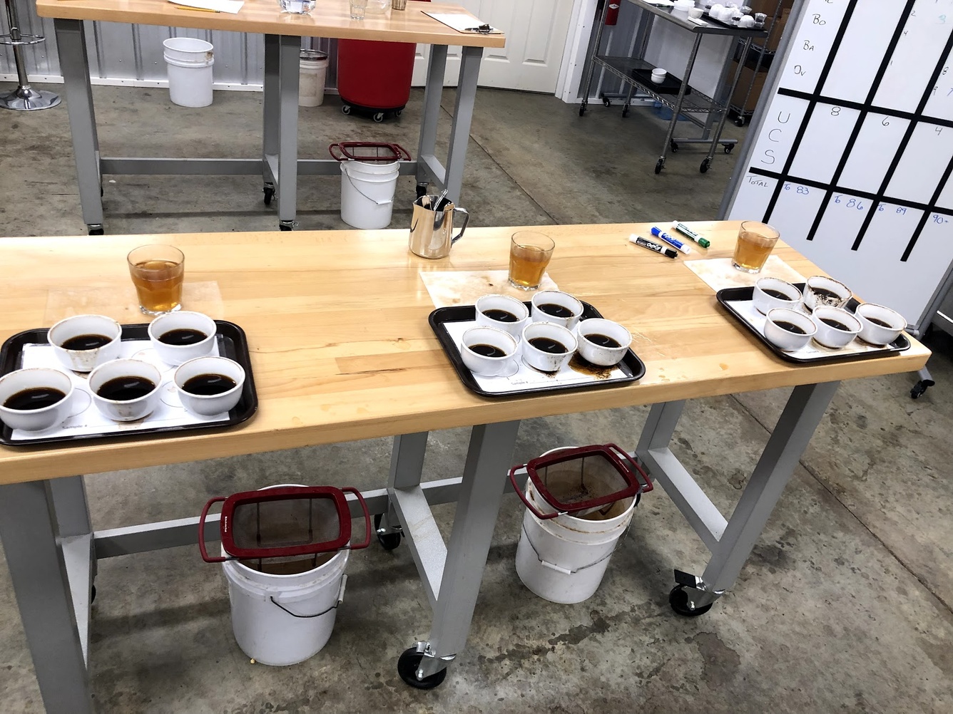B3: Chuẩn bị nước và Bày mẫu ra bàn cupping