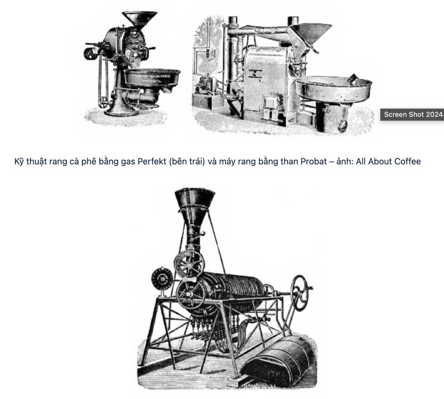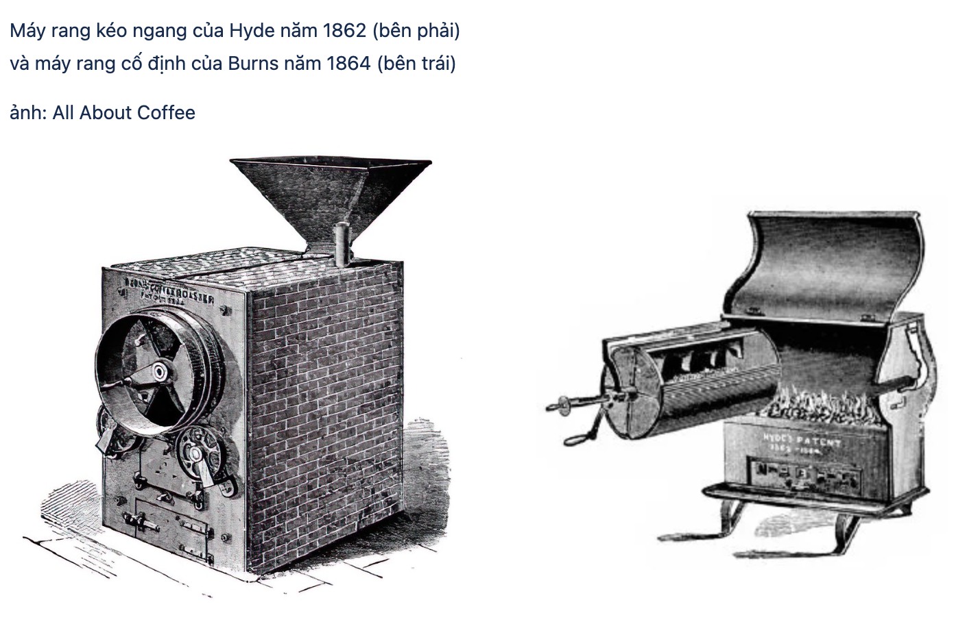 Một số máy rang cà phê thời kỳ đầu của Pháp – ảnh: All About Coffee