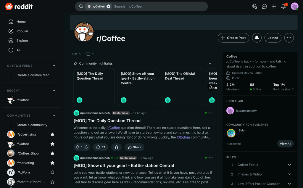 Với hơn 3 triệu thành viên, subreddit r/Coffee là nơi bạn có thể tìm hiểu mọi khía cạnh của specialty coffee, từ cách rang, pha chế, đến thương hiệu thiết bị tốt nhất.