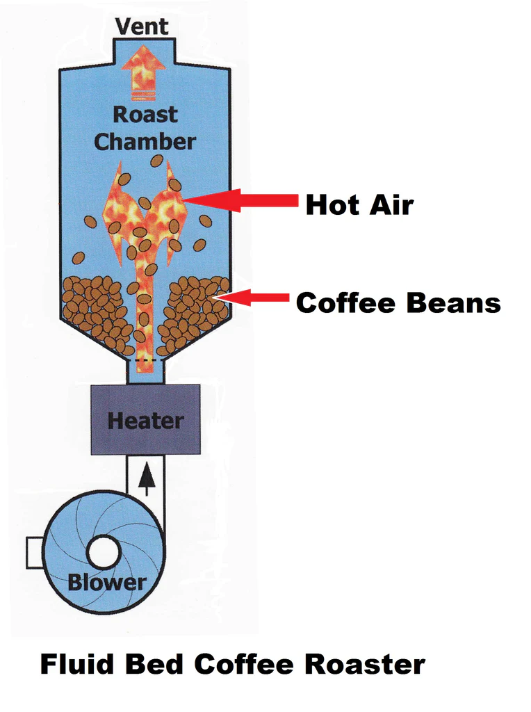 Fluid-bed sử dụng luồng không khí để thay đổi vị trí hạt cà phê — nâng chúng lên trong luồng không khí để chúng nổi và hoạt động giống như cà phê là một loại chất lỏng hơn. Hạt cà phê có thể di chuyển tự do trong luồng không khí và do đó rang đều mà không cần phải di chuyển trống quay.