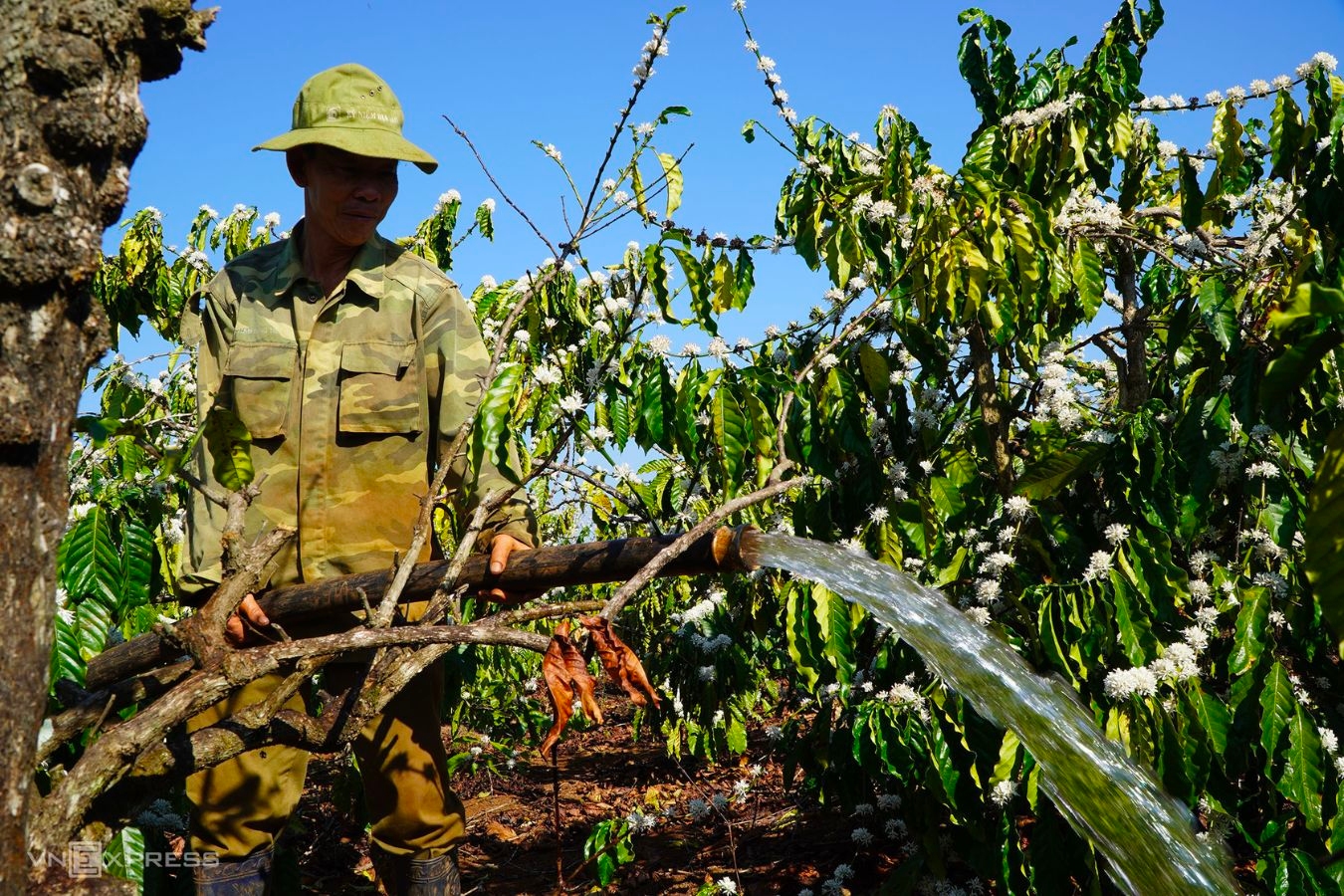 (Nông dân bơm nước tưới cây cà phê - nguồn ảnh: vnexpress.net)