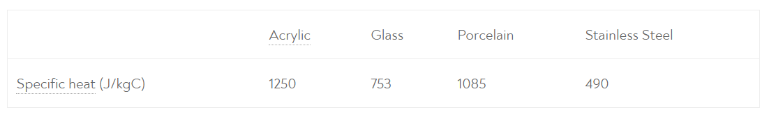 Là khả năng hấp thụ nhiệt của một vật liệu, để chúng được nóng lên. Ví dụ chất liệu bằng nhựa sẽ mất nhiều thời gian để để chúng ta thấy chúng nóng lên, ngược lại chất liệu bằng kim loại sẽ nóng lên ngay lập tức. Hay Nhựa là High thermal mass và kim loại là Low thermal mass.