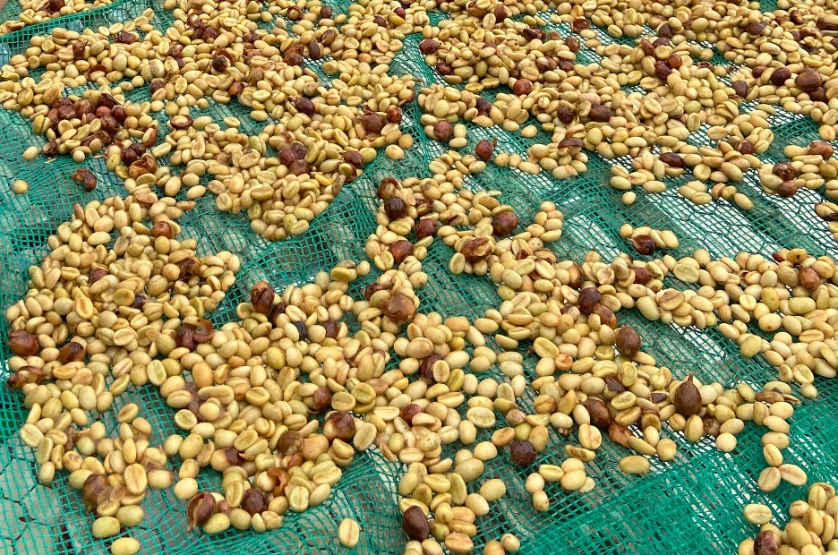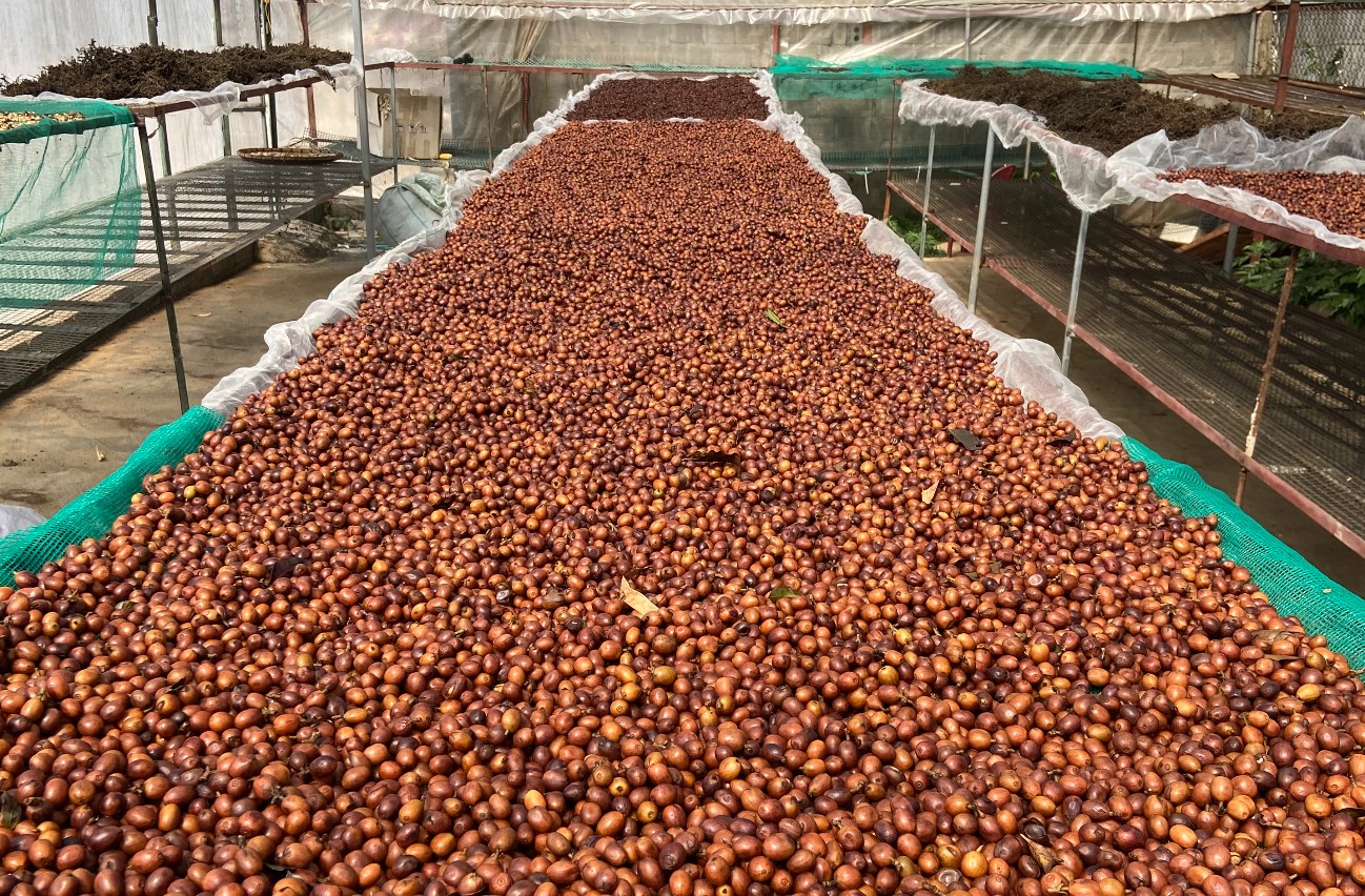 Sau khi thu hoạch cà phê sẽ được loại bỏ tạp chất, rửa sạch, thả vào thùng nước lớn, những quả xanh, non, lép và sâu hại nổi lên sẽ được loại bỏ trong 24 giờ đầu. Sau đó toàn bộ cà phê sẽ được phơi nắng trên giàn từ 10 – 25 ngày mà không cần tách vỏ trước đến khi độ ẩm giảm xuống còn 11-12%. Quá trình lên men cà phê sẽ diễn ra trong thời kỳ phơi khô này khi các enzyme từ các vi sinh vật khác nhau được tiết ra, thịt quả và chất nhầy sẽ bị phân hủy hình thành pectinases trên vỏ trấu, quá trình phân giải pectin là nguồn carbon cho vi sinh vật sau khi hấp thụ đường đơn ban đầu. Quá trình lên men bắt đầu khi có sự phân lập của vi khuẩn, nấm men, nấm sợi.