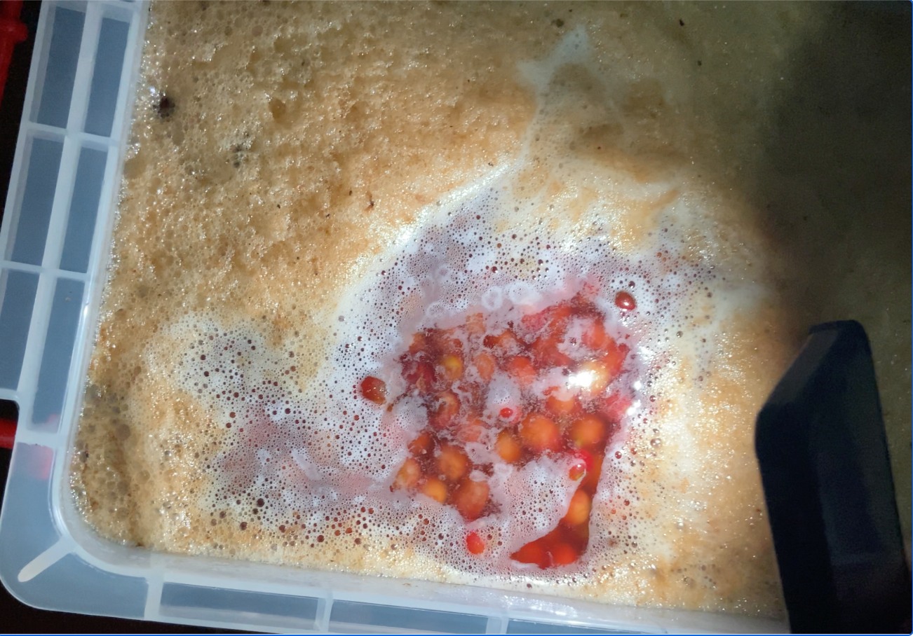 – Lên men hiếu khí là những gì xảy ra khi có sẵn Oxy trong không khí. Các vi sinh vật sử dụng Oxy và cơ chất (các hợp chất hữu cơ trong thành phần vỏ quả cà phê) để phát triển và thải ra các chất hữu cơ thứ cấp.