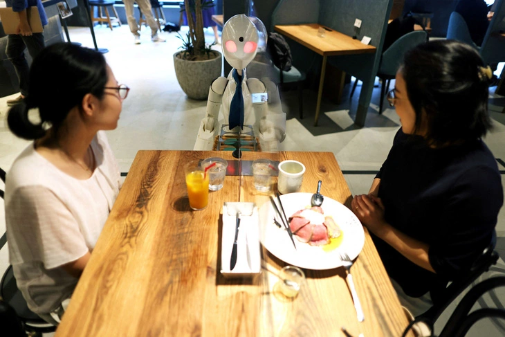 "Xin chào! Bạn khỏe không?" - anh Michio Imai gửi lời chào đến những vị khách vừa bước vào quán cà phê Dawn ở Tokyo. Lời chào được phát ra từ một chú robot có hình dáng như chim cánh cụt.