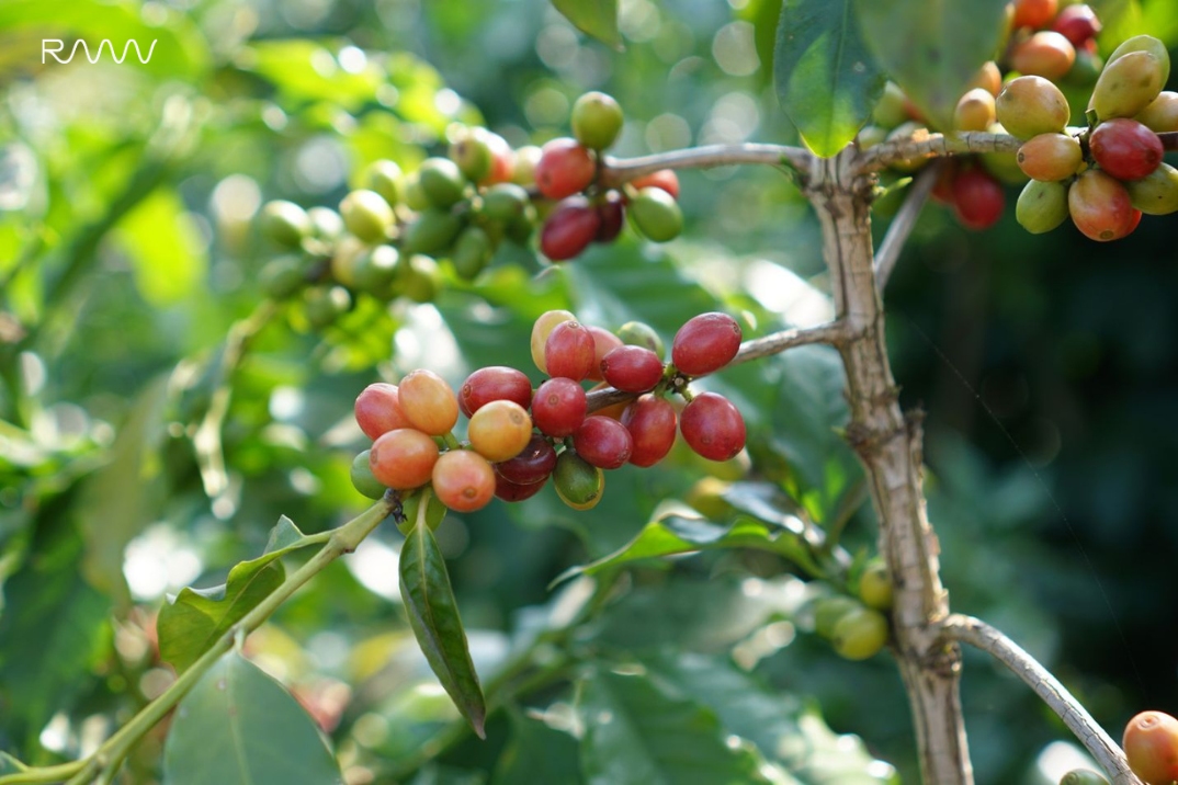 (Cà phê xanh, ương, và chín cùng trên một cành cây)